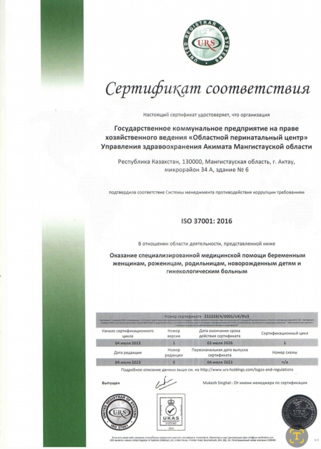 Жарияланған күні: 30-11-2023 Маңғыстау облыстық перинатальдық орталығы. Комплаенс қызметі қаперіңізге береді!