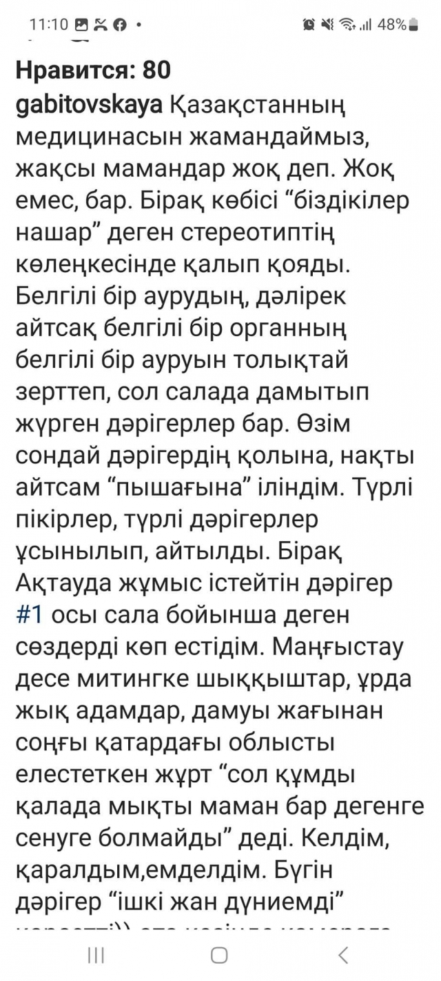 ұсынылып, айтылды. Бірақ Ақтауда жұмыс істейтін дәрігер №1 осы сала