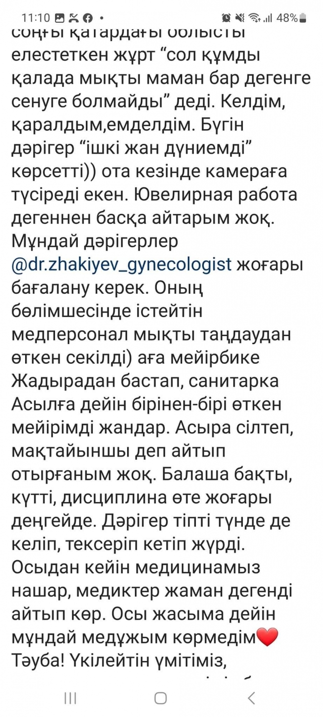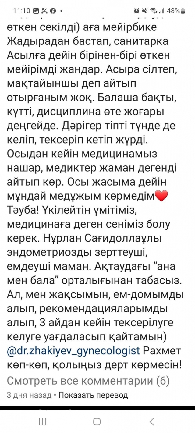 басқа айтарым жоқ. Мұндай дәрігерлер @dr.zhakiyev_gynecologist жоғары
