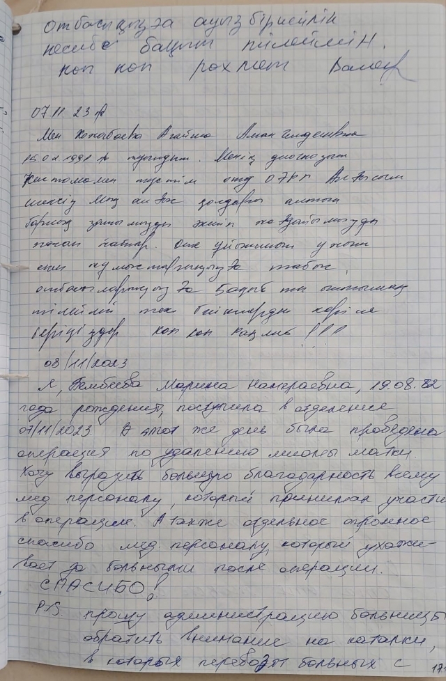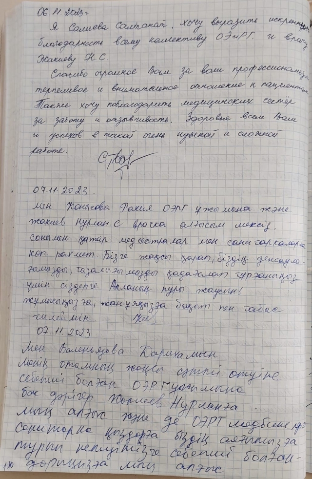 Жарияланған күні: 31-10-2023 Әрбір медицина қызметкері үшін ең жақсы марапат – ол емделушінің айығуы мен алғысы!