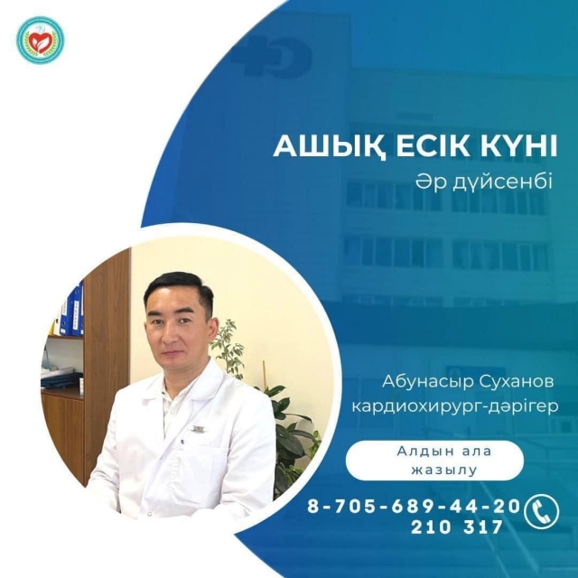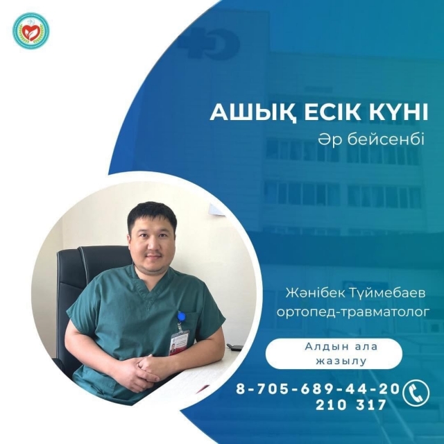 Маңғыстау облыстық көпбейінді ауруханасының дәрігерлері ашық есік күнін өткізеді. Олай болса, төмендегі кесте бойынша дәрігермен кеңесуге асығыңыз.