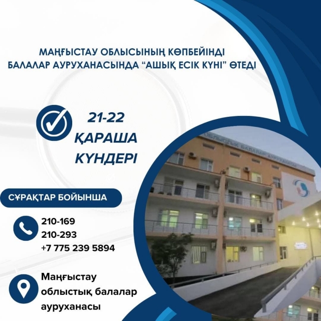 21-22 қараша аралығында Маңғыстау облыстық көпбейінді балалар ауруханасының дәрігерлері "Ашық есік" күнін өткізеді. Төмендегі кесте бойынша дәрігермен кеңесуге асығыңыз.