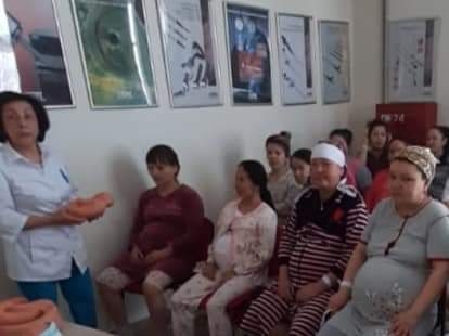 Ресурс орталығында жүкті әйелдермен кезекті дәріс өткізілуде. Дәрігер мамандар "Босануға психопрофилактикалық дайындық" сабағында жүкті әйелдің толғағы басталған кезде өзін қалай ұстау керектігі, ауырсыну сезімін төмендету, дұрыс ағымды босану мақсатында түрлі физикалық тәсілдерді үйретуде.