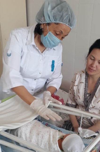 босанған аналармен баланы емшек сүтімен қоректендірудің маңызы, баланың қауіпсіз тамақтануы, нәрестені омырауға дұрыс салу, сүт бездері қатаюының алдын-алу туралы сұхбаттасып, дәрістер өткізуде.