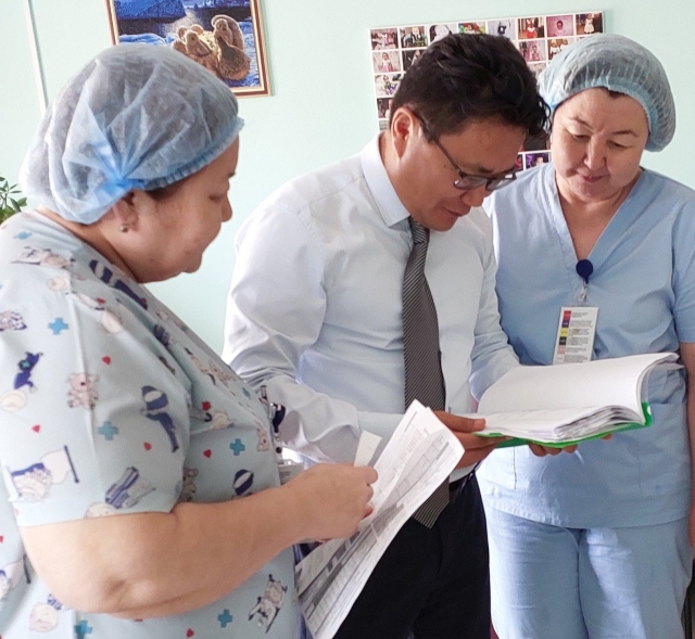 Жетекші маман бөлімше дәрігерлерімен кездесіп, бірқатар сәбилерді қарап, емдеуге бағытталған іс-шараларына қосымша кеңестер беріп, олардың орындалуын қамтамасыз етуді тапсырды.