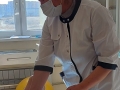 Алғашқы күнде Облыстық перинатальдық орталығының жұмыстарымен танысты. Қабылдау бөлімінен бастап барлық құрылымдық бөлімдерді аралап, пациенттермен кездесті. Акушер-гинеколог А. Ханаева босану бөлімшесінде болып, толғатқан аналардың босануында тәжірибелік көмек көрсетті. Емхана бөлімінде пациенттерге консультациялық қабылдаулар мен диагностика жүргізді. Сонымен қатар, КазНИОР мамандарымен online режимінде болған телемедициналық кеңеске қатысып, онкологиялық дертке шалдыққан маңғыстаулық жүкті әйелге қатысты емдеу іс-шараларын таңдауға, талқылауға және қорытынды шешім шығаруына қатысты.