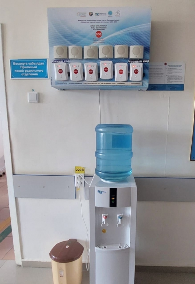 Бөлімшедегі медициналық ақпараттандырылған «SOS» бағдарламасы шұғыл жағдайда тез арада көмек көрсету үшін, медициналық көмек сапасын арттыру және уақытылы көмек көрсету мақсатында қажетті мамандарды қабылдау бөліміне дер кезінде шақыруға арналған. «SOS» сигналдық батырмасы арқылы анестезиолог-реаниматолог, аға акушер-гинеколог, зертханашы, неонатолог шақырылады. Жүйенің дабыл түймелері барлық бөлімшелерде бар. Бұл жүйе қажетті жағдайда дәрігерлердің шұғыл әрекет етуіне үлкен әсері бар.