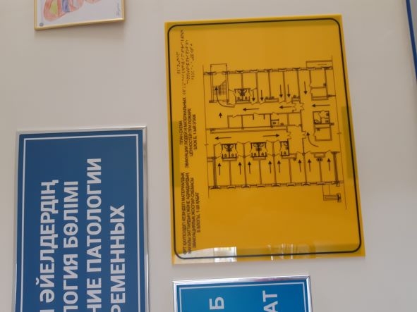 эвакуациялау схемалары, шығатын жолдары мен жерлері көрсетілген