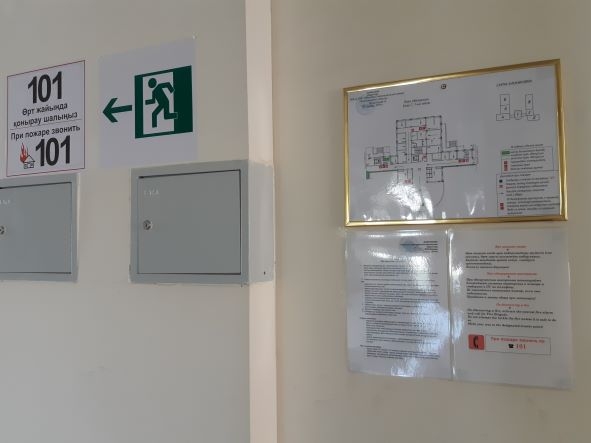 нұсқаулықтар әр қабатта ілінген. Өрт дабылдамасы іске қосылған кезде