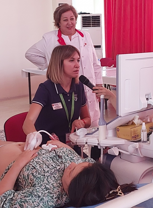 Мастер классқа УДЗ мамандарымен қатар, акушер гинеколог дәрігерлер де қатысып, білімдерін жетілдіруде. Дәріскерлер қатысушыларға ұрықтың хромосомалық патологиясын, туа біткен даму ақауларын ерте анықтауға және диагностикалауға, генетикалық хромосомалық, анатомиялық бұзылуларды емдеуге және түзетуге келмейтін, ауыр өліммен аяқталатын балалардың туылуын алдын алуға бағытталған скрининг бойынша жаңа ақпараттарды клиникалық жағдайлармен ұштастыра отырып жеткізуде.