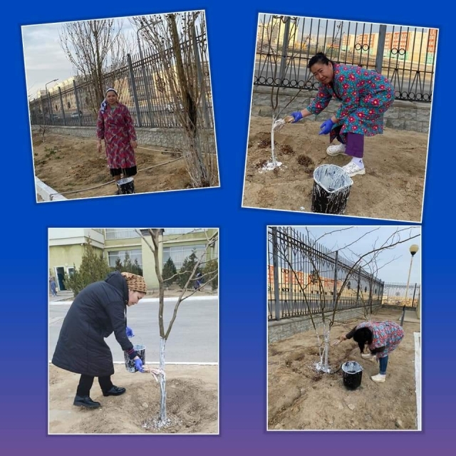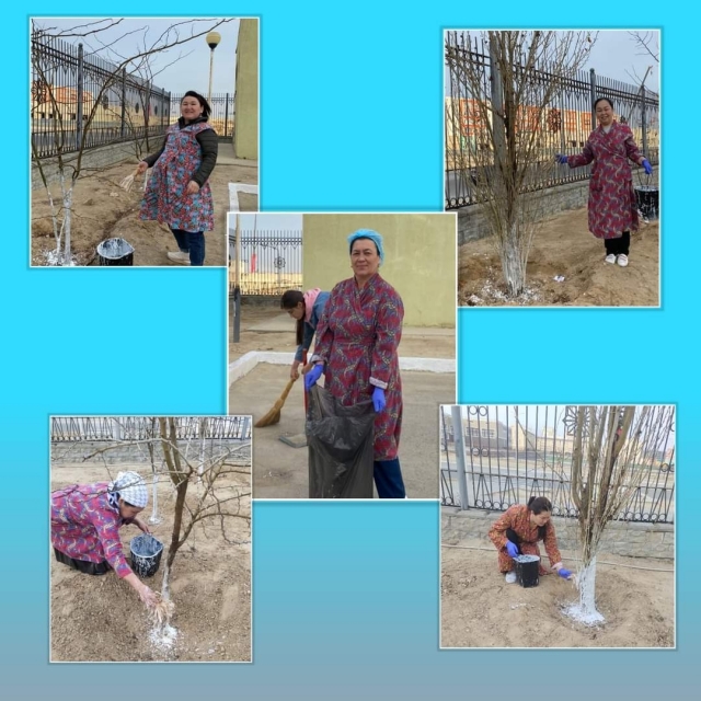 ағаштардың түптерін қопсыту, әктеу, артық бұталарын кесу жұмыстары жасалды.