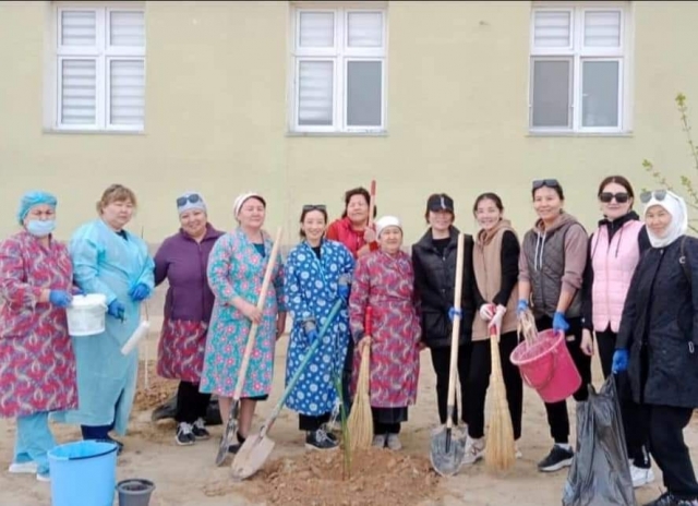 өткізді. Абаттандыру барысында көшеттер мен гүлдер отырғызылды.