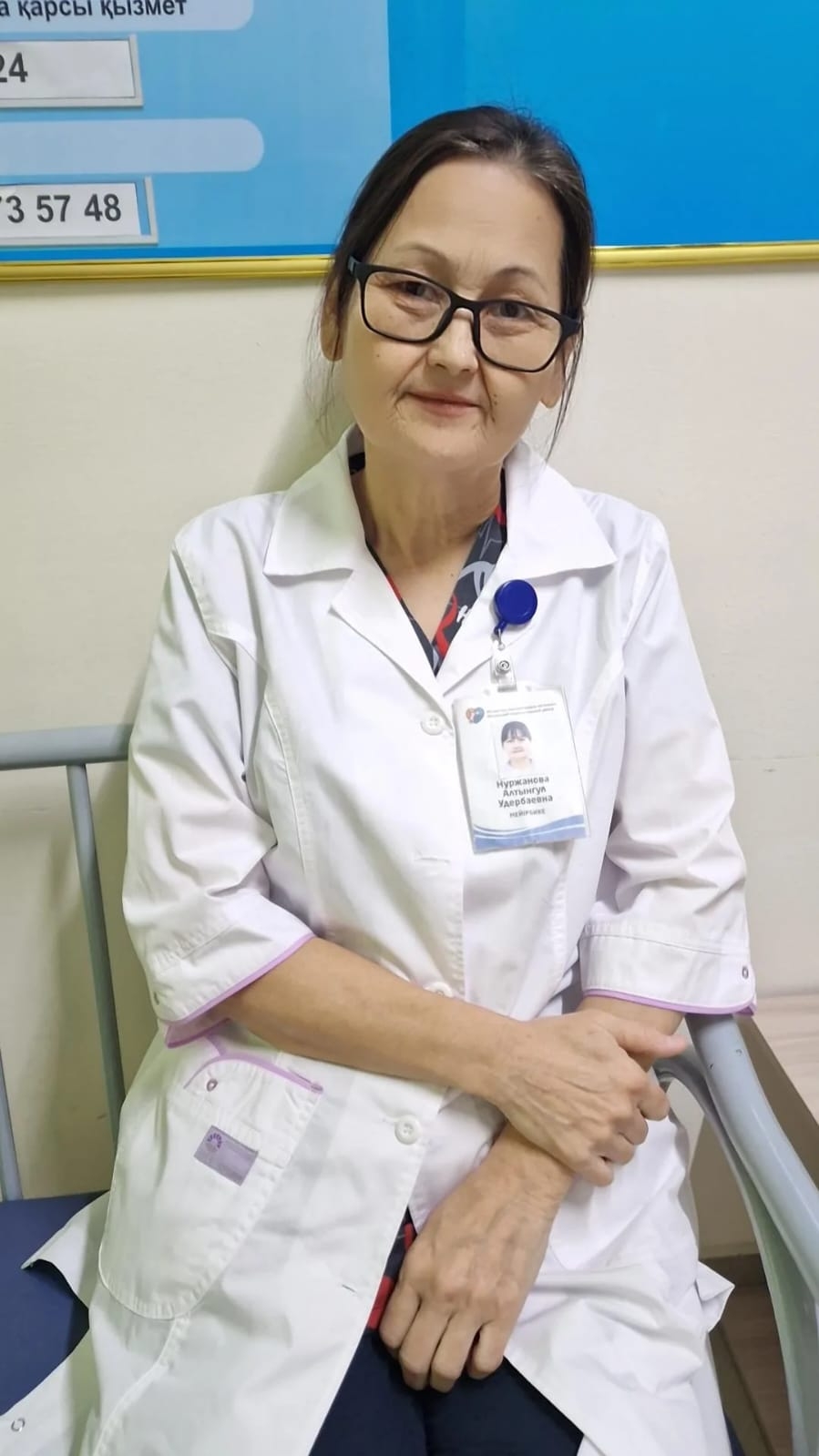 | Нуржанова Алтынгул Удербаевна - нәрестелердің реанимация және интенсивті терапия бөлімшесінің аға медбике, еңбек өтілі 36 жыл | |