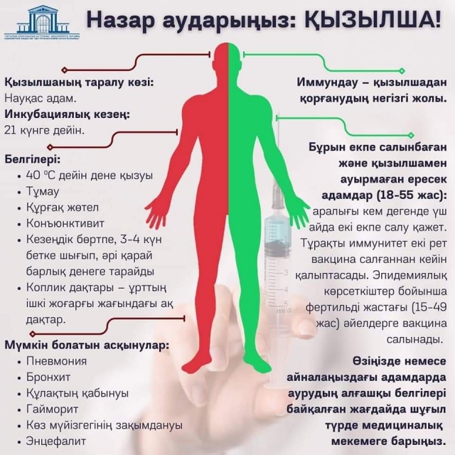 Жарияланған күні: 06-11-2023 : 10:33 ҚЫЗЫЛША АУРУЫНАН САҚТАНЫҢЫЗ!