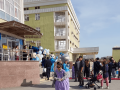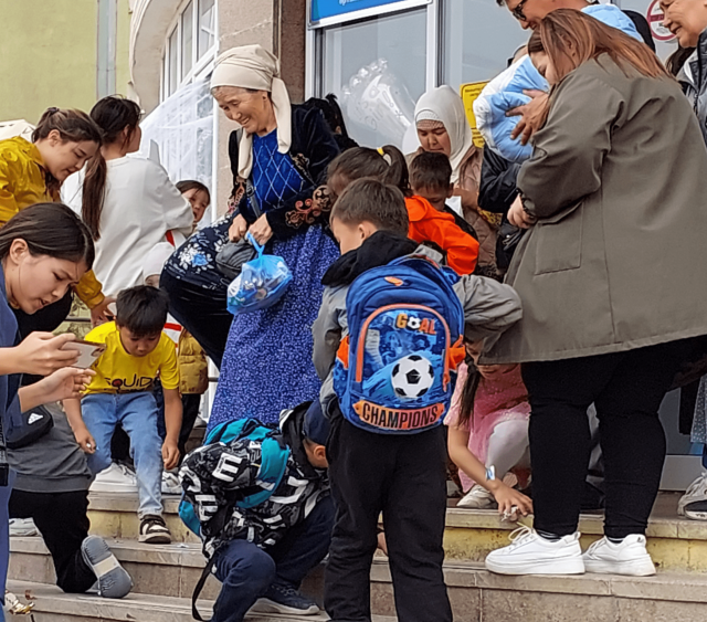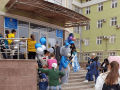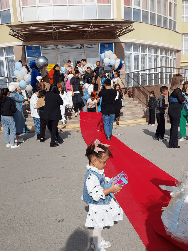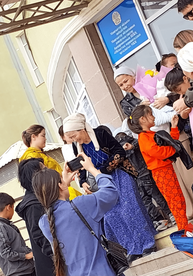 орталығы ғимаратының кіре беріс алдында сәбилерді үйге шығару