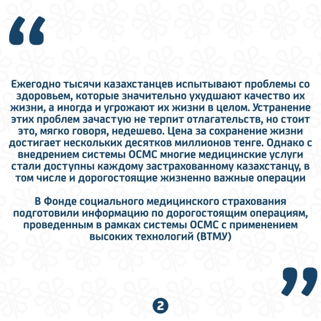 В ФСМС РАССКАЗАЛИ, КАКИЕ ДОРОГОСТОЯЩИЕ ОПЕРАЦИИ ДОСТУПНЫ КАЗАХСТАНЦАМ ПО ОСМС