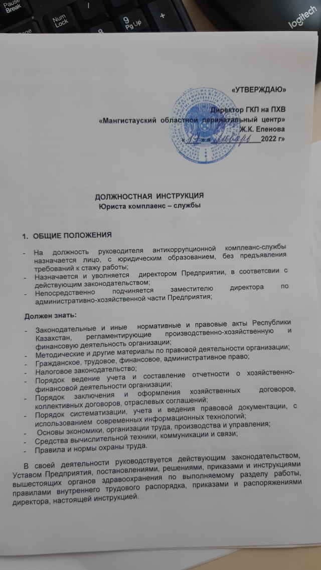 Антикоррупционная комплаенс-служба ГКП на ПХВ «Областной перинатальный