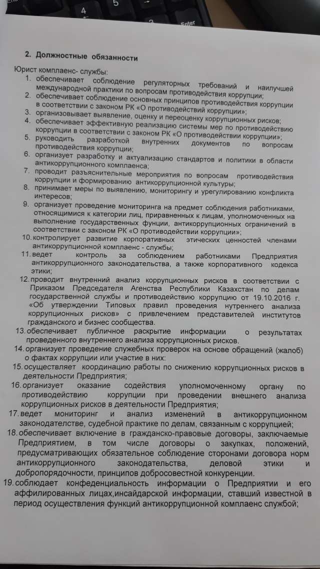 Дата публикации: 29-06-2023 Сыбайлас жемқорлыққа қарсы комплаенс қызметінің ережесі