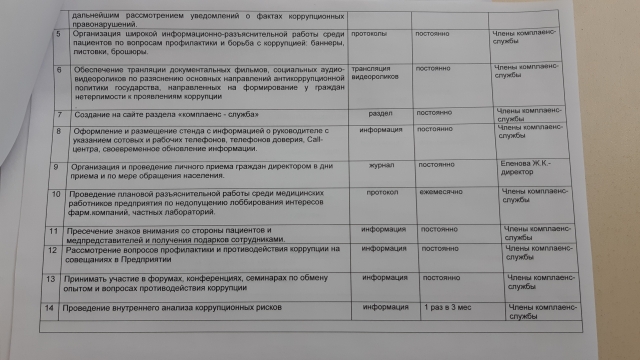 Антикоррупционная комплаенс-служба ГКП на ПХВ «Областной перинатальный