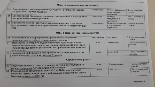 Дата публикации: 20-06-2023 Мангистауский областной перинатальный центр провели анализ коррупционных рисков за период 2020,2021,2022 гг.