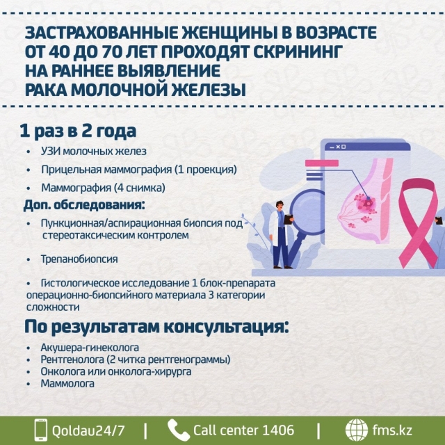 Застрахованные женщины в возрасте от 40 до 70 лет 1 раз в 2 года проходят СКРИНИНГ НА РАННЕЕ ВЫЯВЛЕНИЕ РАКА МОЛОЧНОЙ ЖЕЛЕЗЫ