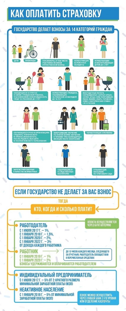 В системе ОСМС обязаны участвовать все постоянно проживающие жители (всеобщий охват) и каждый из них должен платить взносы (либо за него платит государство)