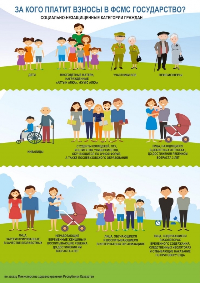 Согласно закону «Об ОСМС» освобождаются от уплаты взносов в фонд 15 категорий граждан: