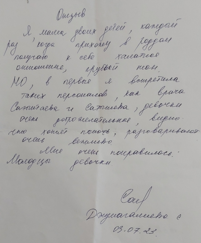 Дата публикации: 29-06-2023 Пациенттердің алғысы