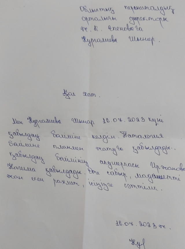 Дата публикации: 31-10-2023 Әрбір медицина қызметкері үшін ең жақсы марапат – ол емделушінің айығуы мен алғысы!